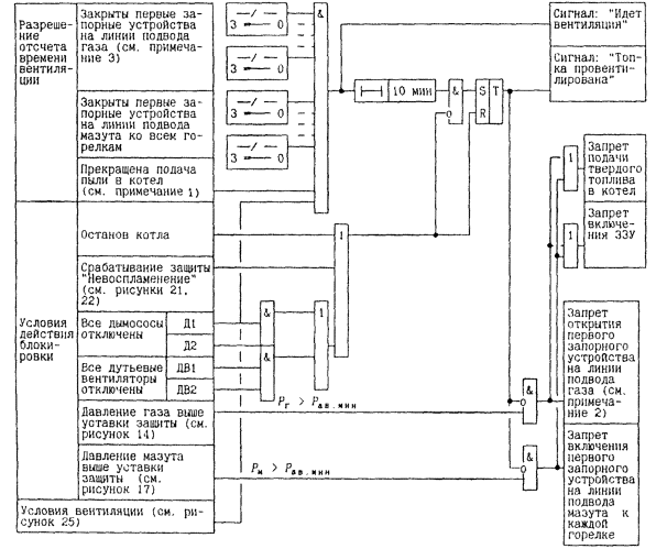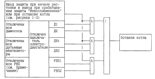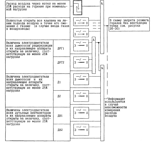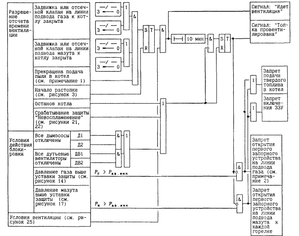 Рисунок 29 - Запрет розжига горелок при растопке котла без вентиляции топки. Пылегазовый котел