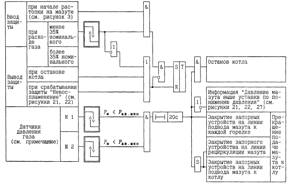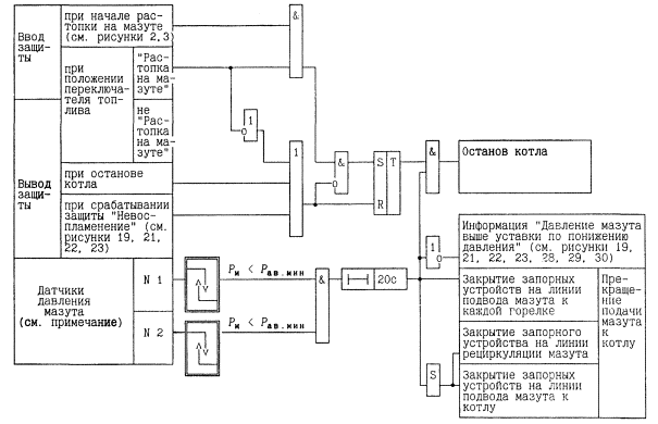 Рисунок 16 - Защита по понижению давления мазута. Газомазутный котел