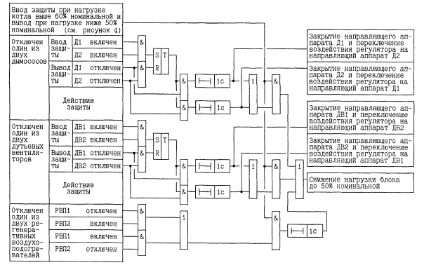 Рисунок 18 - Защита по отключению одного из двух тягодутьевых механизмов или регенеративных воздухоподогревателей котла