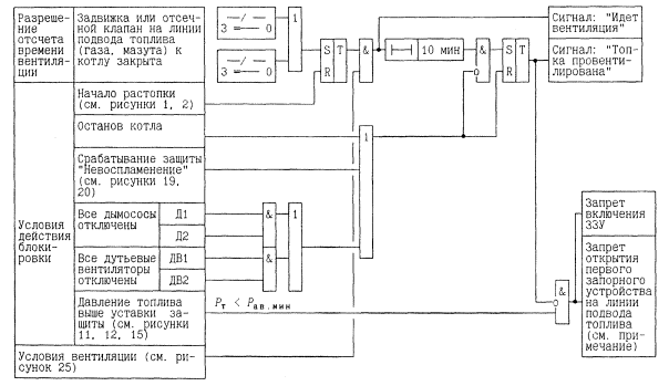 Рисунок 26 - Запрет розжига горелок при растопке котла без вентиляции топки. Газовый и мазутный котлы