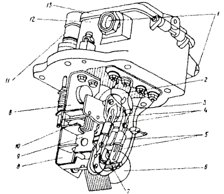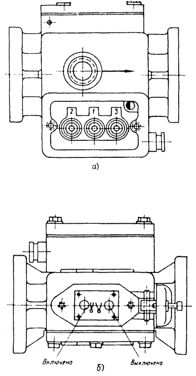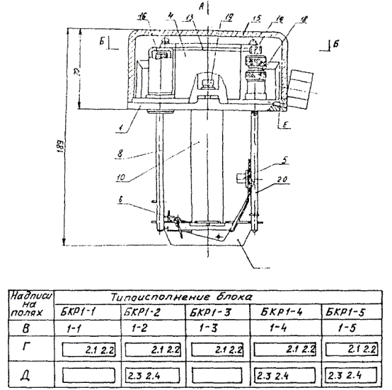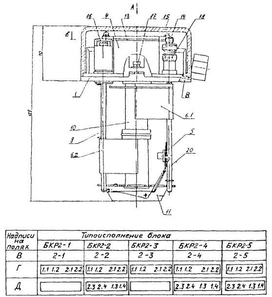 Обозначение типоисполнения контактов по таблице 2 входит в полное обозначение типоисполнений реле и их реагирующих блоков, так например, РГТ80-2О1 - газовое реле с исполнением контактов 2 и климатическим исполнением О1 по ГОСТ 15150-69 имеет реагирующий блок БКР2-2. Более детально конструкции реагирующих блоков струйного реле (БКР1) и газовых реле (БКР2) представлены соответственно на рисунках 8 и 9.