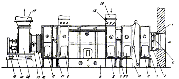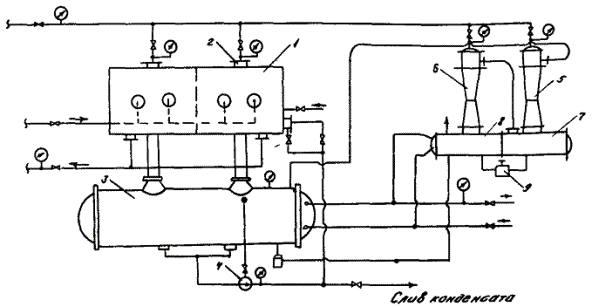 Срок действия установлен с 01.06.85 г. до 01.06.95 г. 1. ОБЩИЕ ПОЛОЖЕНИЯ1.1. Настоящая Типовая инструкция содержит требования, предъявляемые при эксплуатации, испытаниях в процессе эксплуатации и после ремонта, пуске и наладке систем кондиционирования воздуха (СКВ) тепловых электростанций (ТЭС) с центральными кондиционерами и пароводяными эжекторными холодильными машинами. 1.2. В Типовой инструкции рассматриваются общие вопросы по эксплуатации, испытаниям, пуску и наладке СКВ. На электростанциях на основу настоящей Типовой инструкции, заводских инструкций и [10] следует разрабатывать рабочие инструкции с учетом местных условий. 1.3. Производство строительно-монтажных работ и организация эксплуатации СКВ должны соответствовать ГОСТ, проекту, СНиП; действующим нормам технологического проектирования тепловых электрических станций и сетей и противопожарным нормам строительного проектирования промышленных предприятий и населенных мест, а также [5] - [7]. Размещение и устройство электрооборудования СКВ должно соответствовать [16]. 1.4. Надежная работа СКВ на электростанциях является необходимым условием обеспечения надежности работы основного и вспомогательного оборудования, требуемых санитарно-гигиенических условий для эксплуатационного и ремонтного персонала. 1.5. Для обеспечения надежной работы СКВ необходимо: - проводить техническое обслуживание и плановые ремонты силами квалифицированного персонала; - периодически проводить испытания и при необходимости наладку на санитарно-гигиенический эффект; - осуществлять периодический контроль за состоянием воздушной среды в обслуживаемых помещениях. 1.6. Эксплуатация СКВ должна обеспечивать круглогодичное поддержание параметров воздушной среды (температуры, влажности, подвижности) в обслуживаемых помещениях в соответствии с требованиями [1] и [4]. На ТЭС должен быть разработан и утвержден главным инженером график остановов оборудования, входящего в СКВ. При составлении этого графика следует учитывать, что система хладоснабжения работает только в теплый период года, а система теплоснабжения - только в холодный период. Все ремонтные работы по системе теплоснабжения должны выполняться в летний период, по системе хладоснабжения - в зимний. Останов непрерывно работающего оборудования (при отсутствии резервирования) для выполнения ремонта следует производить в переходный период года (весна, осень). 1.7. Проверка в процессе эксплуатации состояния воздушной среды в рабочей зоне производственных помещений на соответствие [4] должна производиться по графику, утвержденному главным инженером электростанции. Такие проверки должны производиться также после монтажа нового, реконструкции или капитального ремонта существующего оборудования СКВ. Эти работы должны выполняться специальным подразделением ТЭС либо с привлечением сторонней организации. В случае выявления несоответствия фактического состояния воздушной среды требуемым параметрам должны быть разработаны мероприятия по устранению выявленных дефектов. 2. ОПИСАНИЕ СХЕМ И ПРИНЦИПА РАБОТЫ СИСТЕМЫ КОНДИЦИОНИРОВАНИЯ ВОЗДУХА2.1. Система кондиционирования воздуха (рис. 1) состоит из следующих основных элементов: - центрального кондиционера; - источника хладоснабжения (пароводяной эжекторной холодильной машины); - источника теплоснаб