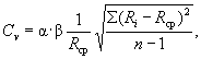 где V - скорость распространения ультразвука, м/с; К - поправочный коэффициент, зависящий от базы прозвучивания; ℓ - база прозвучивания, м; t - время распространения ультразвука, мкс. 6.4.6 Градуировочные зависимости «скорость - прочность» и «отскок - прочность» устанавливаются по формулам ГОСТ 17624-87 [18] при этом используются результаты испытаний бетона комбинированным методом. 6.4.7 Значения фактической прочности бетона определяются с помощью полученных градуировочных зависимостей и представляются в табличной форме. 6.4.8 Показатель изменчивости прочности, характеризующей однородность проконтролированного бетона, вычисляется по формуле