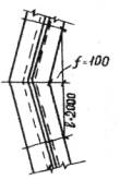 полка уголка нижнего пояса фермы погнута в двух местах; в пределах фасонки f = |