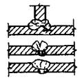 Подрезы основного металла вдоль усилия и местные подрезы (до 25% длины шва) поперек направления усилия |