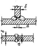 привести к возникновению хрупких трещин (поджоги основного металла в начале сварного