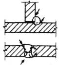 Несплавления по кромкам, непровары в стыковых швах, а также непровары в швах на участках угловых и тавровых соединений, где проектом предусмотрено сквозное проплавление |