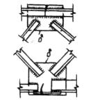 Недостаточные расстояния между сварными швами крепления раскосов и поясов (Δ) Δ