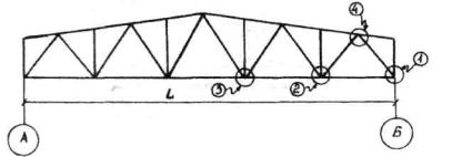 верхнего пояса фермы погнуты в плоскости фермы; f = |