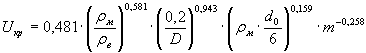 Определение Uм. При известной средней по сечению скорости воздуха при движении пылевоздушной смеси в трубопроводе U для расчета Uм необходимо определить критическую скорость воздуха в пневмотранспортных трубопроводах по выражению (4) из /2/ или (5) из /3/. Выражение (3) применяется при выполнении условий: m ³ 2; D ³ 0,08 м; d0 ³ 20·10-6 м, а в других случаях используется выражение (4).
