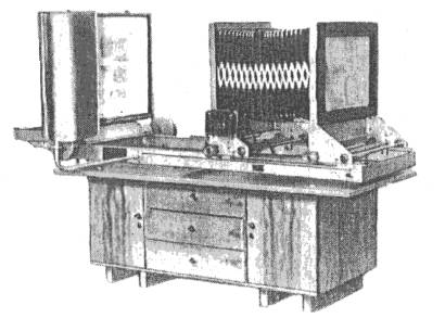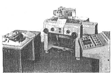 9.15. Фотонаборная установка ФНО (рис. 52) предназначена для набора и построчного фотографирования текстов обложек, титульных листов, заголовков и надписей шрифтами различных очертаний и получения позитивных копий на фотобумагах и диапозитивов на фотопленках. Установка оснащена набором шрифтов различных гарнитур. Наводка на резкость производится автоматически, набор текста производится вручную негативными фотолитерами.