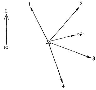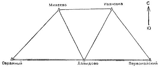 Форма УТ-2 (3 - 7-я страницы журнала) Пункт Моховое_____ Тип знака металлическая пирамида. Год постройки 1972 г. Высота над маркой верхнего центра: столика для инструмента _-_ м горизонтальной оси инструмента 1,40 м верха визирной цели 5,65 м Таблица направлений ° ′ ″ 1. Ивановка______________________________ 0 00 00,0_____________ 2. Березка_______________________________ 71 48 22,0_____________ 3. Гора__________________________________ 107 17 46,9_____________ 4. Башня________________________________ 183 34 06,4_____________ 5. ______________________________________ __________________________ 6. ______________________________________ __________________________ 7. ______________________________________ __________________________ 8. ______________________________________ __________________________ Ориентирный пункт, d = 583,4 м 92° 00′ 24″_____________ ЧЕРТЕЖ НАПРАВЛЕНИЙ