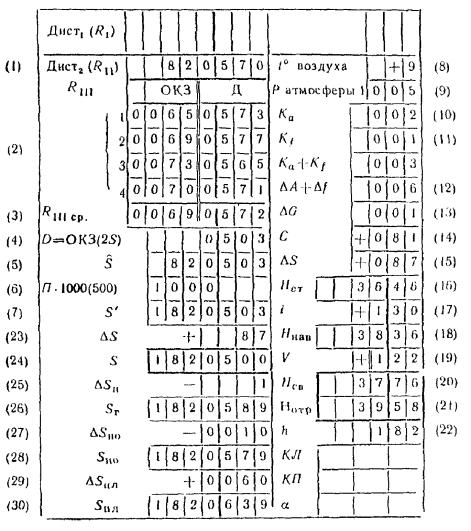 Форма УТ-30 (Нечетная страница журнала) М.О. = 0°00′ К = 100,00