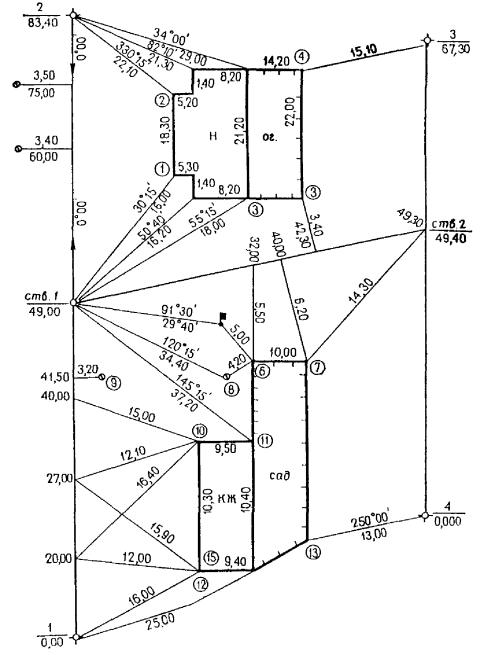 МОСКВА СТРОЙИЗДАТ 1986 Рекомендовано к изданию решением Научно-технического совета ПНИИИС Госстроя СССР. Даны указания по обработке и оформлению полевой и первичной камеральной технической документации инженерно-геодезических изысканий. Приведены правила составления и оформления полевых журналов, ведомостей и актов, даны типовые формы первичной камеральной документации и образцы их заполнения. Для инженерно-технических работников изыскательских и проектно-изыскательских организаций. Разработано ПНИИИС Госстроя СССР (канд. техн. наук С.А. Алейников, инженеры П.И. Остапенко, В.Я. Дольников, В.В. Ларин, А.Ф. Хлопников, Н.П. Калинин, Т.Н. Метакса) при участии п/о Стройизыскания Госстроя РСФСР (канд. техн. наук Л.Я. Кельман) и УкргипроНИИнефть Миннефтепрома СССР (канд. техн. наук И.Е. Субботин, инж. О.В. Иванов). 1. ОБЩИЕ ПОЛОЖЕНИЯ1.1. Полевая техническая документация содержит результаты рекогносцировок, обследований и измерений, выполняемых непосредственно на местности, и является основой (первоисточником) материалов инженерно-геодезических изысканий. 1.2. Полевую и первичную камеральную техническую документацию рекомендуется вести в журналах и ведомостях по формам, приведенным в настоящем Пособии. 1.3. Полевые журналы должны иметь формат 148 ´ 210, 210 ´ 297 мм и содержать не более 50 страниц. 1.4. Кроме основной части, предназначенной для записей результатов рекогносцировок, обследований и измерений, каждый журнал должен содержать: титульный лист, оглавление, одну-две страницы, предназначенные для записей контролирующих лиц; страницу для оформления подписей. В журналах полигонометрии, теодолитных и нивелирных ходов одна страница или развернутый лист используется для зарисовки схемы ходов. 1.5. Титульный лист, являющийся одновременно обложкой журнала, заполняется по образцу, приведенному в прил. 1. Поля титульного листа предназначены для записей: поле 1 - наименования министерства (ведомства), которому подчинена организация; наименования организации; названия или номера экспедиции, партии или отряда; поле 2 - года производства изысканий; поле 3 - названия объекта изысканий; поле 4 - регистрационного номера журнала и его названия. Например, «Журнал № 2 нивелирования IV класса» или «Журнал № 3 обследования колодцев подземных коммуникаций» и др.; поле 5 - кратких технических характеристик использованных приборов и оборудования, например увеличения зрительной трубы, типа теодолита, нивелира, реек и др. Если измерения выполнены техническими теодолитами и нивелирами, мерными рейками, рулетками и другими стандартными простыми приборами, то сведения об их технических характеристиках могут не приводиться; поле 6 - фамилий и инициалов производителя работ и начальника партии; поле 7 - адреса организации и просьбы возвратить журнал по указанному адресу при его случайной утрате. 1.6. В содержании журнала рекомендуется выносить номера ходов, базисов, точек привязки, наименование выполняемых работ, а также номера страниц журнала, с которых начинаются соответствующие записи. 1.7. На странице для оформления подписей (обычно последней странице журнала) приводятся: число пронумерованных страниц, подтвержденное подписью начальника партии (отряда); число заполненных страниц, заверенное подписью производителя работ; указание о проверке журнала с подписью лица, вы
