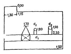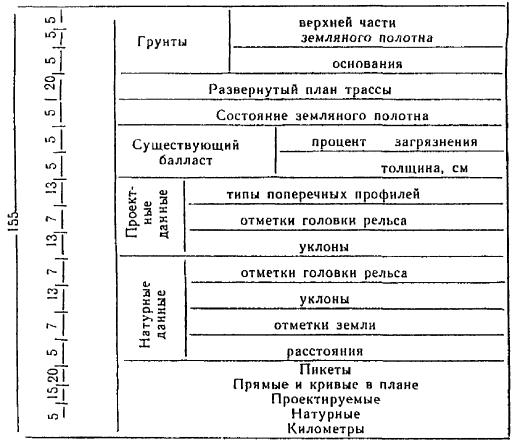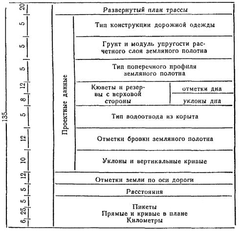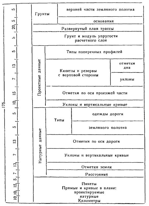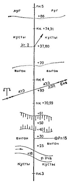 6.4. При необходимости выполнения детального обследовании опор (эстакад) составляется журнал по форме УТ-42 (прил. 48). 7. ТРАССИРОВАНИЕ ВНЕПЛОЩАДОЧНЫХ КОММУНИКАЦИЙ7.1. Трассы внеплощадочных коммуникаций по их назначению можно условно разделить на три вида: наземные (автомобильные и железные дороги, трамвайные пути, каналы водоснабжения и др.); подземные (водопроводы, нефтепроводы, газопроводы, канализация, паропроводы, кабельные линии и др.); воздушные (канатно-подвесные дороги, линии электропередачи, трубопроводы на опорах и др.). 7.2. При изысканиях трасс внеплощадочных коммуникаций используются: пикетажный журнал (прил. 51), журналы теодолитных ходов (см. прил. 20), технического нивелирования (см. прил. 21), мензульной и тахеометрической съемок (см. прил. 29 и 30), журнал обследования воздушных линий и измерения высоты подвеса проводов (см. прил. 46). 7.3. Основной документацией при изысканиях трасс внеплощадочных коммуникаций являются продольные профили и планы, которые составляются на отдельных листах высотой 297 мм и оформляются штампом выпускающей организации в правом нижнем углу чертежа. 7.4. В зависимости от протяженности коммуникаций чертежи плана и продольного профиля трассы могут выполняться на нескольких листах со ссылкой на чертежи прилегающих участков. 7.5. Пикетаж на плане трассы независимо от его ориентирования должен располагаться слева направо. Порядковое расположение пикетов на продольном профиле должно соответствовать расположению пикетов на плане трассы. 7.6. Масштабы планов и высоты сечения рельефа топографических съемок трасс в зависимости от их назначения принимаются по табл. 1 Инструкции по инженерным изысканиям для промышленного строительства (СН 225-79). 7.7. Масштабы продольных профилей рекомендуется принимать следующие: для линейных объектов значительного протяжения - 1:10000 или 1:5000 с добавлением при необходимости профилей отдельных сложных участков в более крупном масштабе; для объектов небольшого протяжения или на участках сложных переходов 1:2000, 1:1000. 7.8. Планы и профили переходов (сложных участков) помещаются на одном чертеже и выполняются в одном масштабе. При большой протяженности перехода (сложного участка) план и профиль могут размещаться на отдельных чертежах. 7.9. При вычерчивании продольного профиля на нескольких листах наименование элементов сетки, масштабы и указания о том, в какой системе высот и на основании каких материалов составлен продольный профиль, помещаются только на первом листе. 7.10. Продольный профиль проектируемой автомобильной дороги и железнодорожных путей составляется в соответствии с прил. 53 и 55, а по реконструкции дороги и железнодорожного пути - по прил. 54, 56. Продольные профили составляются, как правило, в абсолютных отметках. При составлении профиля в условных отметках указывается порядок перевода их в абсолютные. На профиле показывают натурную линию поверхности земли и проектную линию земляного полотна, отнесенные к оси трассы, а при реконструкции - также линию поверхности существующей дороги или головки рельса существующего пути, изображаемые соответственно тонкой основной и тонкой штриховой линиями. На надпрофильную часть чертежа наносят обозначения и привязку реперов, переездов, сооружений для пропуска воды, направление водоотвода, рабочие отметки насыпи. При большом коли