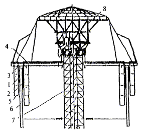 подъемно-переставной опалубки, устанавливаемый внутри (шахте) возводимого