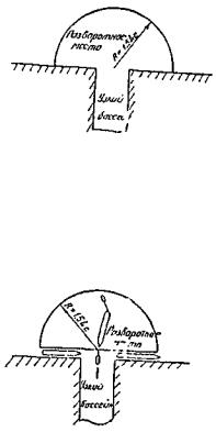 2.3.4.6. В длинных бассейнах (длиной более трех причалов) с большой интенсивностью движения, а также в бассейнах со сквозным транзитным ходом надлежит предусматривать возможность двустороннего движения судов. Ширина таких бассейнов принимается с увеличением по сравнению с нормами, приведенными в табл. 12. При этом размер увеличения устанавливается с учетом тоннажа судов, числа причалов в бассейне и местных условий, но не менее чем 2Bc. Выбор бассейнов, рассчитываемых на двусторонее движение, требует обоснования. 2.3.4.7. Акватория, непосредственно прилегающая к входу в узкий бассейн, должна иметь размеры, позволяющие вписать в нее полуокружность радиусом 1,5Lc, (см. рис. 4).