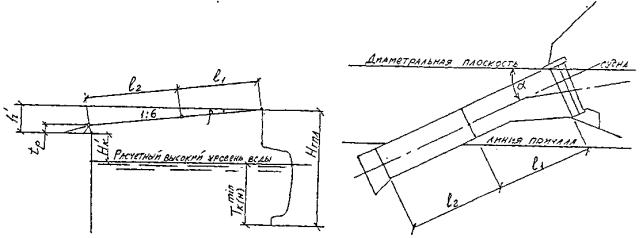 ∆h - величина изменения возвышения кордона относительно грузовой площадки из-за крена и дифферента судна, м (∆h = 0,1 + 0,25 м). Здесь h = l1·sinβ - tр, (7) где: l1 - длина первой секции судовой рампы, м; tр - высота опорной секции рампы, м; β - угол наклона судовой рампы относительно горизонта, град (β = 6 - 10°). Примечания: 1. Параметры l1 и β должны приниматься по данным расчетных и перспективных типов судов. 2. При расчете возвышения кордона для судов с угловой рампой положение второй секции рампы принимается горизонтальным.