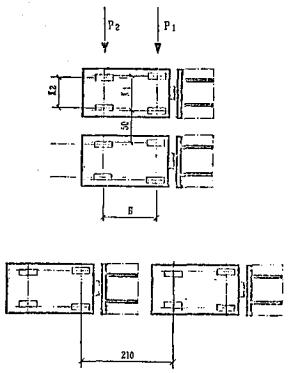 3. Распределение максимальных нагрузок от ноги крана и колес на рельс в зависимости от стандартной схемы нагрузки и в зависимости от колесных схем опор кранов, приведенных на рис. 2, указаны в табл. 2.