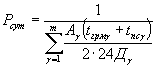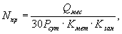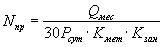 где:Qмес - расчетный грузооборот причального фронта (причалов) в месяц наибольшей работы, т; Pсут - суточная пропускная способность одного причала, т/сут: Kмет - коэффициент использования бюджета рабочего времени причала по метеорологическим причинам в месяц наибольшей работы; Kзан - коэффициент занятости причалов под обработкой судов в течение месяца. Полученные в результате расчетов дробные значения Nпр округляются до ближайшего большего целого. Допускается перегрузка причала на 15 - 20%. 16.2.1.4. Суточная пропускная способность причала Pсут определяется исходя из продолжительности грузовых работ и производственных стоянок при обработке расчетных судов как средневзвешенная величина по формуле