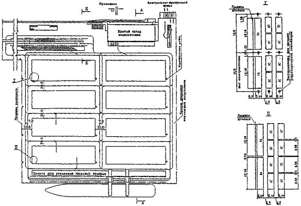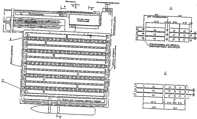 Рис. 7 Схема механизации №3 с козловым перегружателями на рельсовом ходу. План.