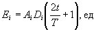 где: Ai - доля i-го груза, загруженного на судно; Di - средневзвешенная загрузка расчетного судна, ед; t - расчетное время хранения груза, сут, t = (0,4T + 8) + 2. (68) Большие значения t принимаются для ПК, обслуживающего несколько судоходных линий с разнотипным составом судов, а также для ПК, перерабатывающих сложный в коммерческом отношении грузооборот (экспорт, импорт), меньшие - для комплексов, обслуживающих однотипные или близкие по грузоподъемности суда. T - интервал между подходами расчетных типов судов, сут.