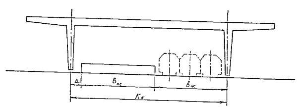 Рис. 15. Компоновка фронта НОГ с козловым краном Ширина открытого склада комплектации определяется (см. рис. 16). Bос = Kк - bж - ∆г, м (72) где: bж - ширина железнодорожной площадки, зависящая от количества железнодорожных путей, м; ∆г - габарит приближения штабеля груза к оси подкранового рельса, ∆г = 2,0 м.