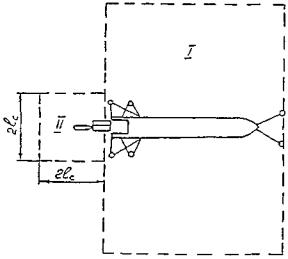 где: Qэj, Qиj - расчетный годовой грузооборот, приходящийся на лихтеровоз j-того типа в проектируемом комплексе соответственно в экспорте и импорте, т; nсj - количество судозаходов лихтеровоза j -того типа в год; Dлэj, Dлиj - средневзвешенная загрузка лихтера j-того типа при перевозке соответствующих грузов в экспорте и импорте, определяется на основании исходных данных в зависимости от грузооборота и номенклатуры грузов, т; nлпj - количество порожних лихтеров, погружаемых и выгружаемых на лихтеровоз j-того типа за один судозаход в проектируемом комплексе, устанавливают в проекте в зависимости от организации работы линий, обслуживаемых комплексом, ед. 17.2.1.5. К основным параметрам причальных устройств для лихтеровозов относятся глубины у причальных устройств и размеры акватории, необходимой для обработки судов-лихтеровозов. 17.2.1.5.1. Глубину причального устройства для лихтеровозов следует устанавливать в проекте согласно требованиям Раздела 2. Примечание: Осадку Т (м) судна-лихтеровоза расчетного типа принимают по наибольшей осадке кормы во время проведения на нем погрузочно-разгрузочных работ. 17.2.1.5.2. Площадь акватории рейдового причального устройства для лихтеровозов делится условно на две зоны (см. рис. 19): I - операционная зона лихтеровоза; II - операционная зона для работы буксиров с лихтерами. Размеры акватории зоны I определяют в соответствии со схемами рекомендуемого Приложения 29 в зависимости от способа постановки судна-лихтеровоза.