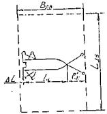 Рис. 3 Начертание причального фронта: а - фронтальным; б, в - ковшовым; г, д - пирсовым. 2.3.4.2. Приводимые ниже указания исходят из того, что швартовные операции должны производиться с помощью буксиров и при скорости ветра не выше предельного значения, определяемого в соответствии с Руководством по определению влияния ветра и волн на условия обработки судов при проектировании морских портов (РД 31.33.03-81). 2.3.4.3. Ширина акватории, прилегающей к фронтально расположенным причалам, должна быть не менее: B = 4Bc + Lб. (2) где: B - ширина акватории; Bc - ширина расчетного судна, м; Lб - суммарная длина буксира-кантовщика и проекции длин буксирного троса на горизонтальную плоскость, м. Величина Lб должна приниматься по табл. 11.