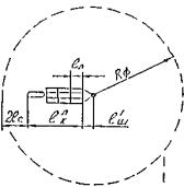 Рис. 1 Схема к табл. l. Давление ноги портального крана на рельс при различных положениях стрелы и ветре, действующем в плоскости стрелы.