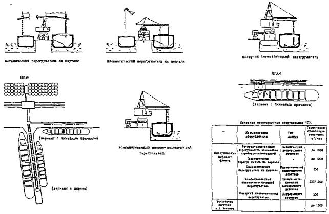 18. ПЕРЕГРУЗОЧНЫЕ КОМПЛЕКСЫ, СПЕЦИАЛИЗИРОВАННЫЕ ДЛЯ НАВАЛОЧНЫХ ГРУЗОВ.18.1. Общие положения. 18.1.1. ПК представляет собой совокупность оборудования, зданий, сооружении, транспортных и инженерных коммуникаций, обеспечивающих заданный технологический процесс. В общем виде ПК состоит из следующих основных функциональных элементов: морского грузового фронта - причала с береговой галереей и судоразгрузочными либо судопогрузочными машинами в зависимости от специализации ПК; речного грузового фронта - причала с береговой галереей и перегрузочными машинами; железнодорожного грузового фронта со станцией погрузки или выгрузки вагонов в зависимости от специализации ПК; железнодорожных путей с устройствами для подачи и вывода вагонов; размораживающего или другого устройства для восстановления сыпучести груза; узла загрузки/разгрузки автотранспорта; склада для накопления и краткосрочного хранения груза; центрального пульта управления; блока служебно-бытовых помещений. 18.1.2. Проектированию ПК должен предшествовать анализ грузопотоков навалочных грузов и экологической обстановки для определения целесообразности концентрации одного или нескольких совместимых видов грузов на одном ПК в одном порту. При этом необходимо стремиться к созданию многоцелевого ПК, способного производить погрузку/разгрузку судов другим видом груза на этом же или на соседнем причале. 18.1.3. Основные требования по компоновке ПК, специализированных на перегрузке навалочных грузов открытого и закрытого хранения, и схемы механизации, используемые на грузовых фронтах и на складе, приведены в рекомендуемом Приложении 35. Схемы механизации ПК. специализированных для выгрузки зерновых грузов, приведены в рекомендуемом Приложении 36. В проекте должна быть показана целесообразность использования в данных конкретных условиях одной из рекомендуемых схем либо разработаны и обоснованы иные схемы. 18.1.4. Транспортные характеристики навалочных грузов, влияющие на выбор технологического оборудования ПК, приведены в справочном Приложении 37. 18.1.5. Требования к основному и вспомогательному оборудованию, системам управления и сигнализации приведены в рекомендуемом Приложении 38. 18.1.6. Технический уровень принятых в проекте решений должен определяться в соответствии с РД 31.31.48-88 "Прогрессивные показатели технического уровня производства и строительных решений в проектах строительства, реконструкции и технического перевооружения морских портов". 18.1.7. Расчеты основных параметров ПК должны выполняться с использованием результатов решения задач оптимизации технологических процессов. Оптимизация основных параметров ПК производится с целью определения производительности технологических линий, вместимости склада и выбора схемы механизации, обеспечивающих минимум приведенных затрат по ПК и транспортным средствам. Для предпроектных проработок и выбора технологических схем ПК для перегрузки навалочных грузов с конвейерными схемами рекомендуется использование для расчета на ЭВМ разработанных Черноморниипроектом программ "Mars" и "Vvgruzka". На стадии рабочего проектирования и выбора поставщика оборудования для уточненных расчетов ПК для погрузки навалочных грузов рекомендуется использование разработанной Черноморниипроектом программы "Mars ". Определение оптималь