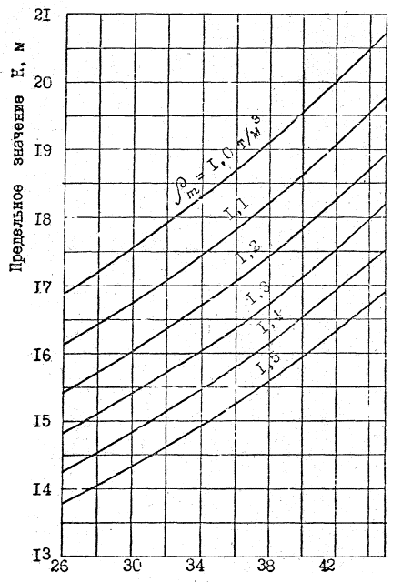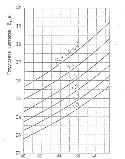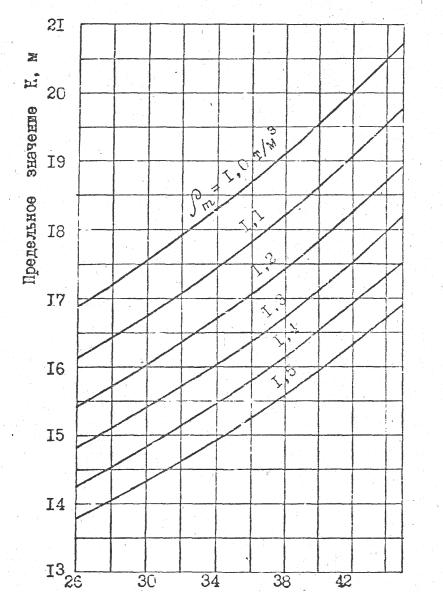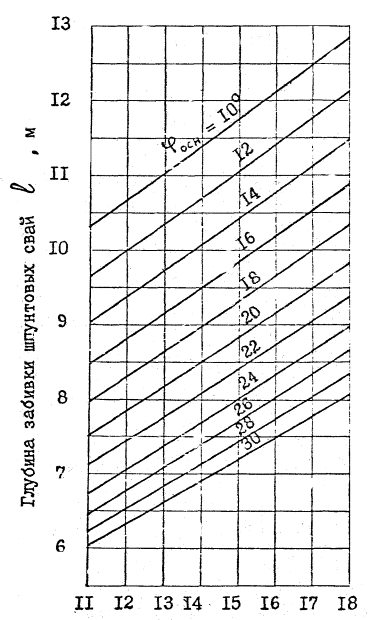 Глубина у причала d, м Рис.4. График зависимости глубины забивки шпунтовых свай от глубины y причала и угла внутреннего трения грунта основания.Таблица 4.1. Нормативные характеристики грунтов в засыпке подпорных стен