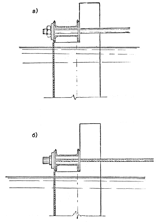 Рис. 5. Варианты крепления анкерных тяг к шпунтовой стенке:а - для анкерных тяг круглого сечения;
