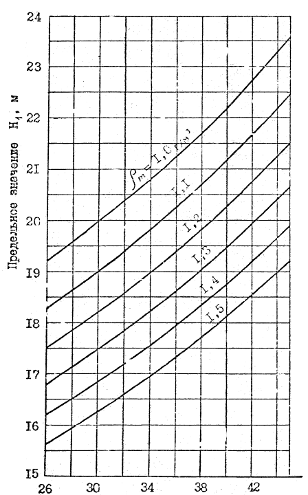 Глубина у причала d, м Рис. 2. График зависимости величины максимального изгибающего момента в шпунтовых сваях от глубины у причала и угла внутреннего трения грунта основания
