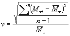 6.22. Требуемый момент трещинообразования определяется по формуле где Мт - момент, воспринимаемый сечением, нормальным к продольной оси элемента, при образовании трещин и определяемый в соответствии со СНиП 3.03.01-87, величина которого указывается в проекте; v - изменчивость (коэффициент вариации) момента трещинообразования в контролируемой партии; mт - коэффициент условий работы, характеризующий точность натяжения арматуры; t - полуширина доверительного интервала, выраженного в долях средней квадратичной ошибки, равная 1,64 для доверительной вероятности 0,95. 6.23. Коэффициент вариации вычисляется по формуле где