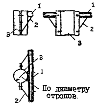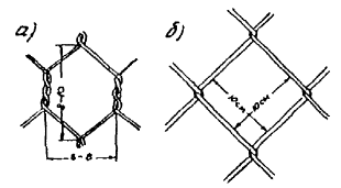 где H - глубина потока, м; v0 - средняя скорость потока, м/с; d - диаметр камня, см. 12.52. Выравнивание каменной наброски с приданием надлежащего профиля откосу следует производить после её осадки. Выравнивание наброски под водой производится водолазами с точностью ±20 см. Правильность укладки камня под водой контролируется промерами и водолазным обследованием. Защита габионами 12.53. Надводные откосы, защищаемые габионами, должны быть предварительно выровнены с засыпкой ям и выбоин песком или каменной мелочью. Подводные откосы должны быть подготовлены согласно указаниям СНиП 3.07.02-87. Планировки не требуется. 12.54. Материалы, применяемые для габионов, должны удовлетворять следующим требованиям: проволока диаметром 2-5 мм для сетки должна быть гибкой, оцинкованной; проволока для каркаса ящика диаметром 6-8 мм; камень должен по своим размерам превышать размеры ячеек сетки. Сетки для обтяжек каркасов делаются в два оборота (рис. 5, а) или в пол-оборота (рис. 5, б). Прикрепление сетки к каркасу ящика показано на рис. 6. Рис. 5. Деталь скрутки сетки габиона: а - в два оборота; б - в пол-оборота Рис. 6. Прикрепление сетки к каркасу 12.55. Загрузка габионов камнем должна производиться следующим образом: а) в местах, не покрытых водой, или там, где глубина воды не превышает высоты габионов, сначала устанавливают порожние ящики, а затем заполняют их камнем; б) если габионы подлежат укладке в местах, покрытых водой, порожние ящики загружают камнем вблизи этих мест, а затем транспортируют их к месту укладки подъемными приспособлениями или по слегам. Слеги должны быть достаточно прочны и удобны для удаления их из-под габионов. Сбрасывание габионов в воду не допускается. Укладка камня в габионах должна быть достаточно плотной и обеспечивать сохранение их формы. Камень следует укладывать равномерно по всей площади габиона. При наличии камня разных размеров необходимо его рассортировать. У сетки следует укладывать камень более крупный, а внутрь габиона - мелкий. Наброска камня в габионы не допускается. Во избежание нарушения формы габионов при загрузке их камнем следует производить растяжку каркасов ломами, забиваемыми в грунт у вертикальных ребер, или же применять опалубку. 12.56. На откосах следует укладывать тюфяки длинной стороной в направлении уклона откоса, а тюфяки, прикрывающие подошву, - вдоль подошвы. При укладке габионов в несколько рядов нижний ряд следует размещать своей короткой стороной в сторону воды, а остальные габионы укладывать с перевязкой швов, причем перевязку следует делать не менее как на 1/3 длины нижележащего габиона. 12.57. Габионы надлежит соединять между собой скрутками из оцинкованной проволоки толщиной не меньше толщины проволоки, примененной для вязки сеток. Скрутки следует прикреплять исключительно к ребрам каркаса и располагать не далее 25 см друг от друга. Защита хворостяными тюфяками 12.58. Подводные откосы и дно в их подошве, которые намечено закрыть хворостяными тюфяками, должны быть подготовлены согласно указаниям СНиП 3.07.02-87. Планировки не требуется. 12.59. Строительная площадка для изготовления тюфяков на реке в летний период должна находиться вблизи места их погружения или выше по течению для спуска тюфяка по воде. По своим размерам площадка должна быть достаточной для вязки и спуска тюфяков, хранения материалов, а также для разм