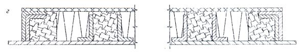 Приложение Е (рекомендуемое) Общие требования к монтажу изделий Е.1 Требования к монтажу изделий устанавливают в проектной документации на объекты строительства с учетом принятых в проекте вариантов исполнения узлов примыкания изделий к стенам, рассчитанных на заданные климатические и другие нагрузки. Е.2 Монтаж изделий должен осуществляться специализированными строительными фирмами или специально обученными бригадами предприятия-изготовителя. Окончание монтажных работ должно подтверждаться актом сдачи-приемки, включающим в себя гарантийные обязательства производителя работ. Е.3 По требованию потребителя (заказчика) изготовитель (поставщик) изделий должен предоставлять ему типовую инструкцию по монтажу дверных блоков, утвержденную руководителем предприятия-изготовителя и содержащую: чертежи (схемы) типовых монтажных узлов примыкания; перечень применяемых материалов (с учетом их совместимости и температурных режимов применения); последовательность технологических операций по монтажу дверных блоков. Е.4 При проектировании и исполнении узлов примыкания должны выполняться следующие условия: заделка монтажных зазоров между изделиями и откосами проемов стеновых конструкций должна быть по всему периметру дверного блока плотной, герметичной, рассчитанной на выдерживание климатических нагрузок снаружи и условий эксплуатации внутри помещений; конструкция узлов примыкания наружных изделий (включая расположение дверного блока по глубине проема) должна максимально препятствовать образованию мостиков холода (тепловых мостиков), приводящих к образованию конденсата на внутренних поверхностях дверных проемов; эксплуатационные характеристики конструкций узлов примыкания должны отвечать требованиям, установленным в строительных нормах. Вариант исполнения монтажного узла внутреннего дверного блока приведен на рисунке Е.1.