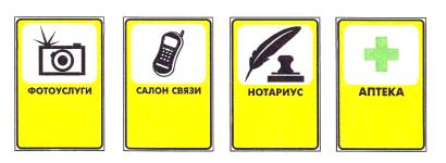 (Измененная редакция, Изм. № 1) 6.8 (Исключен, Изм. № 1) 6.9 Не допускается размещение рекламы путем нанесения либо вкрапления, с использованием строительных материалов, краски, дорожной разметки и т. п., в поверхность автомобильных дорог и улиц. (Измененная редакция, Изм. № 1) 6.10 Средства наружной рекламы размещают с учетом проекта организации движения и расположения технических средств организации дорожного движения. 6.11 При выполнении работ по монтажу и обслуживанию средств наружной рекламы должны быть соблюдены требования по обеспечению безопасности дорожного движения в местах производства дорожных работ, в том числе по [13]. 6.12 Фундаменты размещения стационарных средств наружной рекламы должны быть заглублены на 15 - 20 см ниже уровня грунта с последующим восстановлением газона на нем. Фундаменты опор не должны выступать над уровнем земли более чем на 5 см. Допускается размещение выступающих более чем на 5 см фундаментов опор на тротуаре при наличии бортового камня или дорожных ограждений, если это не препятствует движению пешеходов и уборке улиц. (Измененная редакция, Изм. № 1) 6.13 Рекламораспространитель обязан восстановить благоустройство территории после установки (демонтажа) средства размещения наружной рекламы. Демонтаж средств размещения наружной рекламы необходимо проводить вместе с их фундаментом. (Измененная редакция, Изм. № 1) 6.14 Эксплуатацию знаков информирования об объектах притяжения проводят в соответствии с ГОСТ Р 50597. (Введен дополнительно. Изм. № 2). 7 Правила размещения средств информационного обеспечения участников дорожного движения(Исключен. Изм. № 2). (Измененная редакция, Изм. № 1) 8 Требования к эксплуатационному состоянию средств наружной рекламы и средств информационного обеспечения участников дорожного движения(Исключен, Изм. № 1) ПРИЛОЖЕНИЕ А(справочное) (Измененная редакция. Изм. № 2). Допустимые пиктограммы и примеры надписей для знаков информирования об объектах притяжения