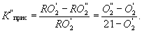 Упрощение методики, изложенной в [6], проведено в предположении, что присосы в газоходе от места измерения в верху топки до контрольного сечения (за пароперегревателем или далее по тракту), где проводится отбор проб газа на анализ, невелики и мало меняются от опыта к опыту из-за малого сопротивления поверхностей нагрева в этом районе. В тех случаях, когда это предположение не удовлетворяется, следует использовать методику [6] без упрощений. Для этого требуется проведение не двух, а трех опытов. Причем описанным выше двум опытам (далее с верхними индексами " и "') должен предшествовать опыт (с индексом ') при том же расходе организованного воздуха, что и в опыте с индексом ("), но с большей нагрузкой. Дополнительно к разрежению в верху топки Sт в опытах должно определяться разрежение в контрольном сечении Sк. Расчеты ведутся по формулам: