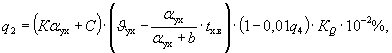 где q2 - потери тепла с уходящими газами, %; q3 - потери тепла с химической неполнотой сгорания, %; q4 - потери тепла с механической неполнотой сгорания, %; q5 - потери тепла в окружающую среду, %; q6 - потери тепла с физическим теплом шлака, %. 3.2. В связи с тем, что задачей настоящих Методических указаний является оценка качества ремонта, а сравнительные испытания проводятся примерно при тех же условиях, потери тепла с уходящими газами могут с достаточной точностью определяться по несколько упрощенной формуле (в сравнении с принятой в [8]): где