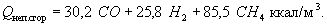 где а1 а2 ... аn - тепловые доли каждого из топлив в смеси; К1 К2...Кn - значения коэффициента К (С, b) для каждого из топлив. 3.3. Потери тепла с химической неполнотой сгорания топлива определяются по формулам: для твердого топлива