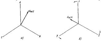 Рис. 7. Изменение напряжения несимметрии сети при переносе конденсаторов высокочастотной связи с фазы А на фазу В а - изменение напряжения несимметрии при отключении конденсаторов на фазе А; б - изменение напряжения несимметрии при подключении конденсаторов на фазу В; в - суммарное изменение напряжения несимметрии; г - результирующее напряжение несимметрии 3. При подключении новой линии к действующей сети необходимо учитывать значение и фазу напряжения несимметрии сети и новой линии. Подключение должно быть выполнено таким образом, чтобы результирующее напряжение несимметрии имело наименьшее значение. Порядок определения наивыгоднейшего присоединения новой линии к сети показан на рис. 8.