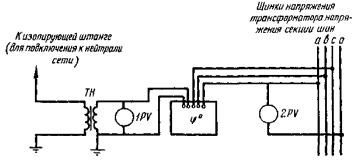Подаваемое на нейтраль напряжение должно быть в противофазе с одним из фазных напряжений сети. Трансформаторы тока ТА1 и ТА2 могут быть любого номинального напряжения, трансформатор тока ТА3 в нейтрали силового трансформатора должен быть рассчитан на полное рабочее напряжение сети. Если во время измерений в сети возникнет замыкание на землю, через источник постороннего напряжения пойдет ток