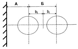 Рис. 3 для неизолированных трубопроводов при Dу до 600 мм - 50 мм; для неизолированных трубопроводов при Dу свыше 600 мм и всех трубопроводов с тепловой изоляцией - 100 мм. Расстояние между нижней образующей или теплоизоляционной конструкцией и полом или дном канала принимается не менее 100 мм. Расстояние Б (между осями трубопроводов) определяется суммированием табличных размеров bi, где bi = b1, b2, … b8. При расположении фланцев в разных плоскостях (вразбежку) расстояние между осями неизолированных трубопроводов следует определять суммированием b4 большего диаметра и b5 - b8 меньшего диаметра. 5.1.10. При проектировании трубопроводов в местах поворотов трассы следует учитывать возможность перемещений, возникающих от изменения температуры стенок трубы, внутреннего давления и других нагрузок. 5.1.11. При совместной прокладке трубопроводов и электрокабелей для определения расстояния между ними следует руководствоваться нормативно-технической документацией. 5.1.12. Не допускается прокладка технологических трубопроводов внутри административных, бытовых, хозяйственных помещений и в помещениях электрораспределительных устройств, электроустановок, щитов автоматизации, в помещениях трансформаторов, вентиляционных камер, тепловых пунктов, на путях эвакуации персонала (лестничные клетки, коридоры и т.п.), а также транзитом через помещения любого назначения. Трубопроводы групп А и Б, прокладываемые вне опасного производственного объекта, следует располагать от зданий, где возможно массовое скопление людей (столовая, клуб, медпункт, административные здания и т.д.), на расстоянии не менее 50 м при надземной прокладке и не менее 25 м при подземной прокладке. 5.1.13. При проектировании трубопроводных трасс рекомендуется учитывать возможность реконструкции, для этого при определении размеров конструкций следует предусматривать резерв как по габаритам, так и по нагрузкам на эти конструкции. В каждом конкретном случае резерв определяется проектом. 5.1.14. Не допускается размещение арматуры, компенсаторов, дренажных устройств, разъемных соединений в местах пересечения надземными трубопроводами железных и автомобильных дорог, пешеходных переходов, над дверными проемами, под и над окнами и балконами. В случае необходимости применения разъемных соединений (например, для трубопроводов с внутренним защитным покрытием) должны предусматриваться защитные поддоны. 5.1.15. Внутрицеховые трубопроводы, транспортирующие вещества групп А, Б и газы группы В (с условным проходом до 100 мм), а также жидкие вещества группы В (независимо от диаметра трубопровода) допускается прокладывать по наружной поверхности глухих стен вспомогательных помещений. По несгораемой поверхности несущих стен производственных зданий допускается прокладывать внутрицеховые трубопроводы с условным проходом до 200 мм исходя из допускаемых нагрузок на эти стены. Такие трубопроводы должны располагаться на 0,5 м ниже или выше оконных и дверных проемов. При этом трубопроводы с легкими газами располагаются выше, а с тяжелыми - ниже оконных и дверных проемов. Прокладка трубопроводов по стенам зданий со сплошным остеклением, а также по легкосбрасываемым конструкциям не допускается. 5.1.16. Прокладку трубопроводов на низких и высоких отдельно стоящих опорах или эстакадах можно применять при любом сочетан
