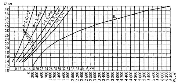 средней толщиной здорового наружного слоя По кривой I для D1 - 22 см и Dэl = 15,8 см. Средняя толщина гнилого кольцевого слоя, определяемая по двум измерениям, равна
