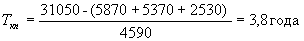 Фактическое значение наработки энергоблока за один полный календарный год, предшествующий моменту расчета, т.е. в период с 05.02.95 по 04.02.96, равно 5100 ч. Прогнозируемое значение средней наработки энергоблока за один календарный год в период от момента расчета до конца ремонтного цикла экспертным путем принимается на 10% меньше: Тр=0,9x5100=4590 ч. Период от момента расчета до конца ремонтного цикла рассчитывается по формуле (5) РД: