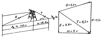 - вертикальное усилие на траверсы демонтируемой опоры; М - усилие в