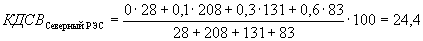 КДО - 29,47; КДП = 64Г15; КДЗ = 53,59. КДН = 0,63 - 29,47 + 0,23 · 64,15 + 0,14 · 53,59 - 40,81.