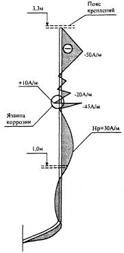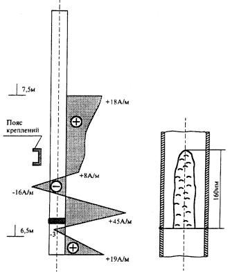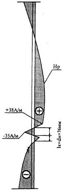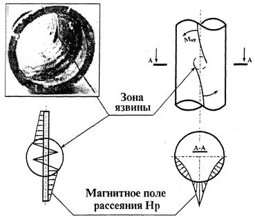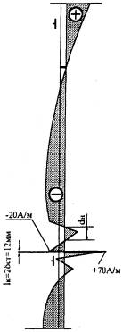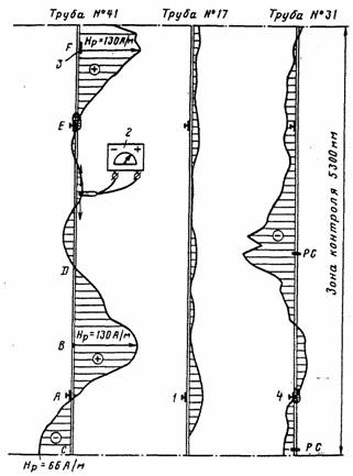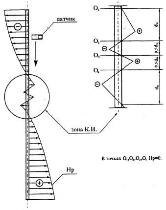 характерное распределение магнитного поля рассеяния Нр, фиксируемое на наружной поверхности трубы,