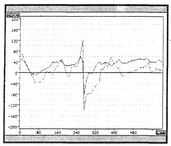 В результате контроля были выявлены следующие участки труб, имеющие зону КН с расстоянием lк между нулевыми значениями Нр, равном (0,5; 1)dн: 14-1, 16-1, 24-1, 30-1 и 31-2 (рис.2.1). При этом на участках 31-1 и 31-4 трубы № 31 были зафиксированы максимальные значения величины Нр, соответственно: -108 А/м , + 98 А/м. На участке 31-3 этой же трубы выше ремонтного стыка (Р.С.) была зафиксирована линия с нулевым значением Нр, характеризующая концентрацию деформации в этом месте трубы.